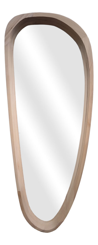 Autre exemple d’inspiration de la nature : le miroir « Egg »… bien que la forme sculpturale suive une ligne plus capricieuse et extravagante que celle d’un œuf. Le massif encadrement en bois est disponible en finition noire, brun foncé et sable, ou laissé au naturel. Cette dernière option s’adresse aux (apprentis) artistes, qui souhaitent lui donner la couleur de leur choix. Lassé ? Un nouveau coup de peinture et le miroir est revalorisé. La customisation se fait à domicile, prolongeant la durée de vie à l’infini.