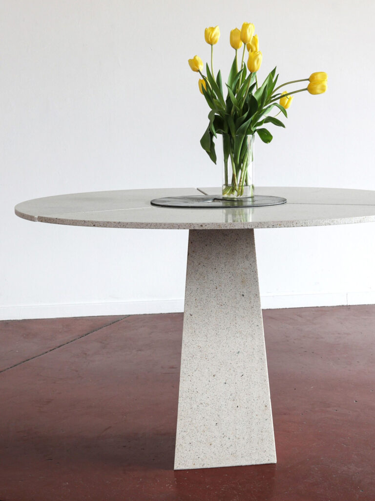 L’histoire du design en révèle encore davantage. Tout a commencé dans l’appartement de Lucas : qui dit rénovation dit isolation et donc remplacement des châssis — et évacuation des appuis des fenêtres en marbre. « Quel dommage de gaspiller un si fantastique produit naturel ! On ne va quand même pas les jeter ! ». L’impitoyable confrontation à la réalité a débouché sur une passion pour les pierres, les processus et forces naturelles et la récupération de matériaux (séculaires). Lucas a récolté de nombreux retours d’expérience sur les tables en marbre, dont les points négatifs l’ont poussé à la réflexion. « Impossible à soulever. Une fois qu’elle y est, elle y reste. Statique. Terriblement cher. Irréparable. » Dès lors, Tripi est modulaire, démontable, transportable et réparable. Une pièce endommagée ? Il suffit de la remplacer (l’élément abîmé trouvera sans nul doute une autre fonction). Envie de changer de type de pierre ? C’est aussi possible.
