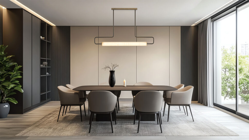 Les lampes à multi-suspensions ne sont pas neuves. Ici, ce sont la matière et la couleur qui font la différence. Pour les suspensions cylindriques en métal, point de noir industriel, mais un chic « bronzo ». Pour les versions rectangulaires, de l’albastro, un simili albâtre en matière synthétique — et on comprend d’emblée pourquoi ! L’albastro est plus résistant aux griffes et plus solide, tout en conservant l’aspect original de l’albâtre. L’éclat soyeux, les motifs nébuleux, le caractère translucide, la lumière doucement filtrée. Occasionnellement, on voit l’albâtre réapparaître dans un intérieur, comme c’est le cas ici, chez Marckdael. Cette unique suspension suffit à réchauffer la pièce, à créer une atmosphère douillettement « vieillotte ». Même en optant pour la lampe design tubulaire, l’albastro continue de produire cette lueur et ambiance adoucies. Et telle est justement l’idée qui sous-tend la nouvelle collection !