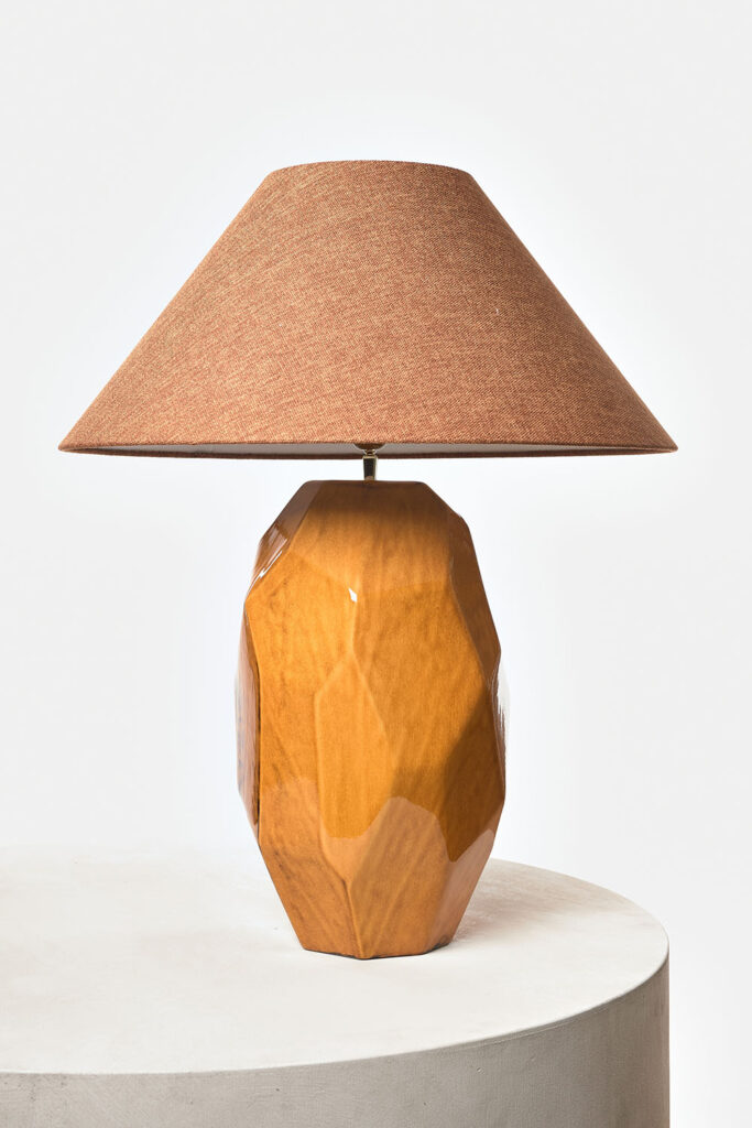 La lampe qui incarne le mieux cette douce nostalgie est sans doute la lampe à abat-jour en tissu. Marckdael lui a toujours réservé une place dans sa collection, avec des formes d’abat-jour classiques. Cette année, le pied en céramique adopte un caractère plus décoratif et artisanal. Un modèle en forme de tonneau semble avoir été taillé en facettes, à la manière d’un diamant. Un pied colonne se voit, lui, orné de motifs rétro en 3D.