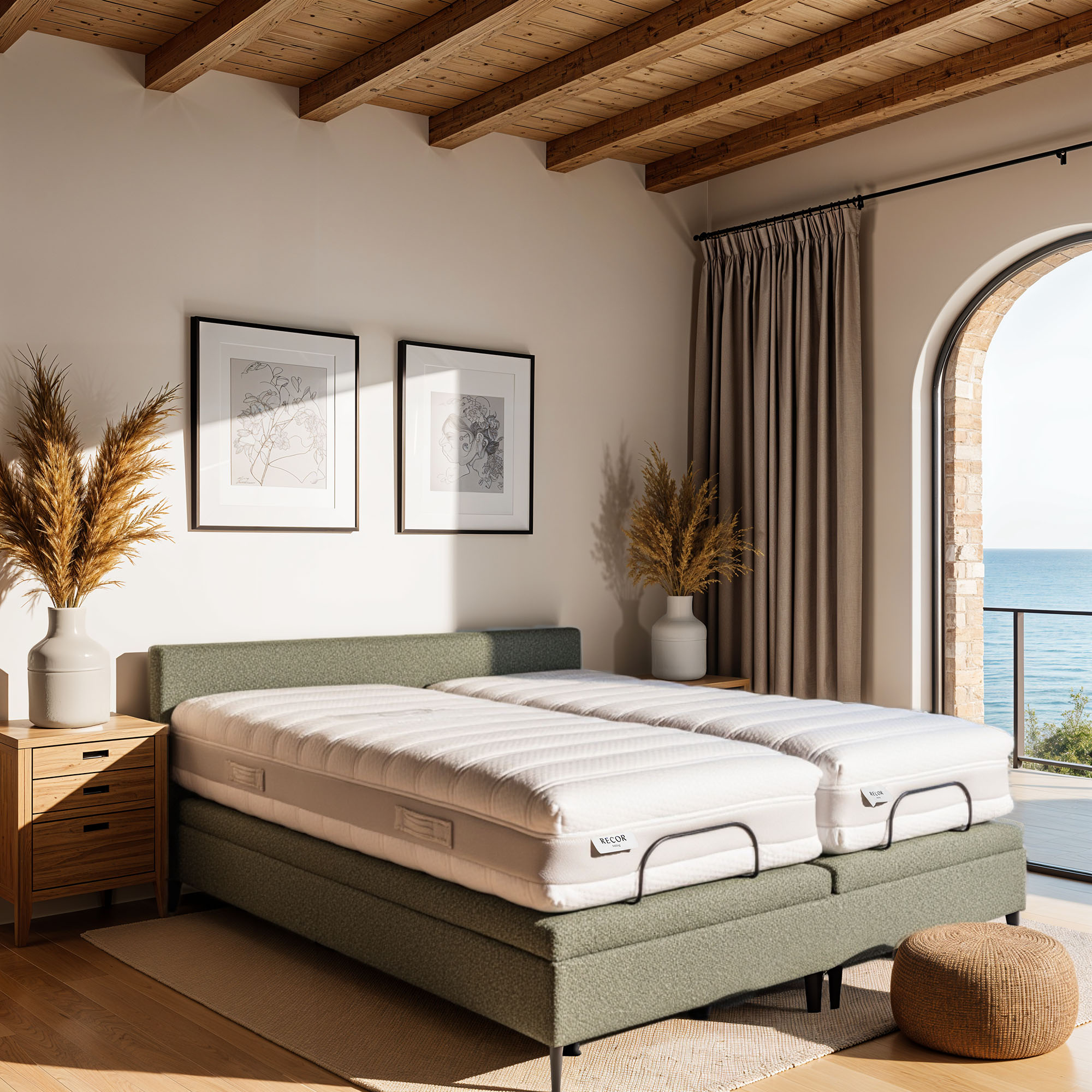 Le concept Wave repose sur le sommier Linear doté de la technologie Smart, comprenant des fonctions telles que la position Zero Gravity, le massage 3D-Wave™, la Sleep Position et la Dream Experience, le tout avec commande par Bluetooth. Rien (ou presque) de neuf ? Et pourtant. Commençons par la base ajustable signée Reverie® (US), LA référence en matière de sommiers modulaires et réglables électriquement (avec plus de 100 brevets à son nom et plus de six millions d’exemplaires vendus depuis 2003). En achetant directement ses sommiers à la source, Recor Bedding obtient un prix d’achat réduit, les rendant accessibles à un plus large public.